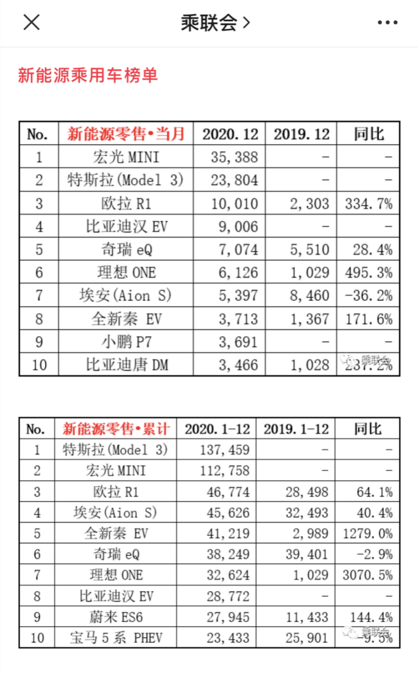 我们从乘联会公布去年电动汽车销量可以看出,眼前最热销的车型当属特斯拉Model 3和宏光MINIEV,总销量分别超了13万辆和11万辆,可见是多么恐怖的数字。
