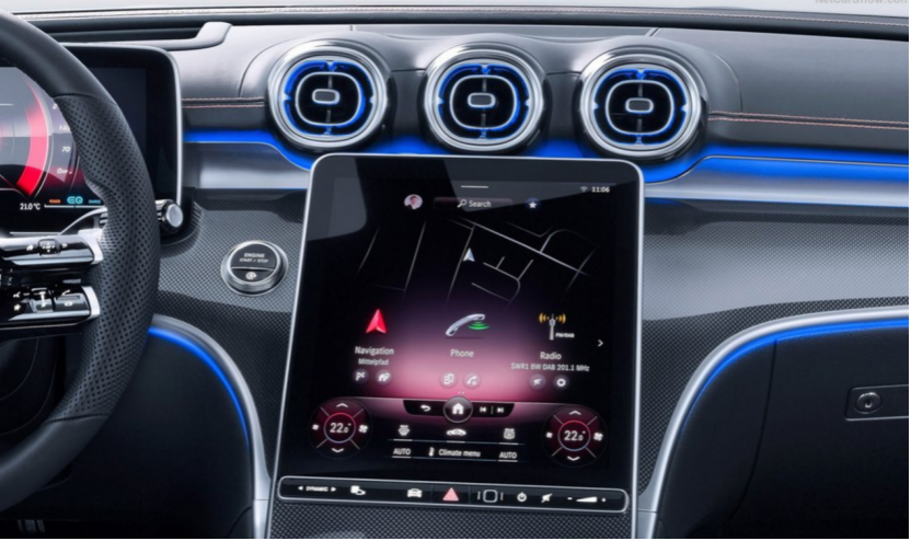 来到内饰,惊呆小伙伴!刚开始我以为奔驰C级会沿用老款S级的双联屏内饰,毕竟C级、E级和S级还是有等级划分的,但我万万没想到,全新C级直接略过双联屏时代,采用了和新款S级同款内饰,相当“豪华”。