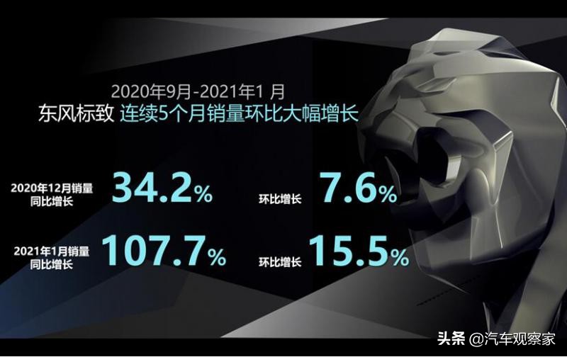 股东持续的大力支持,神龙公司和东风标致对中国市场和客户需求的快速响应和满足,系列积极扎实的行动产生了显著的效果。刚过去的1月份,东风标致实现销量同比增长107.7%,环比增长15.5%的成绩。不仅保持了自去年9月份以来连续五个月的环比正增长;更是保持了去年12月份以来连续同比正增长的势头。