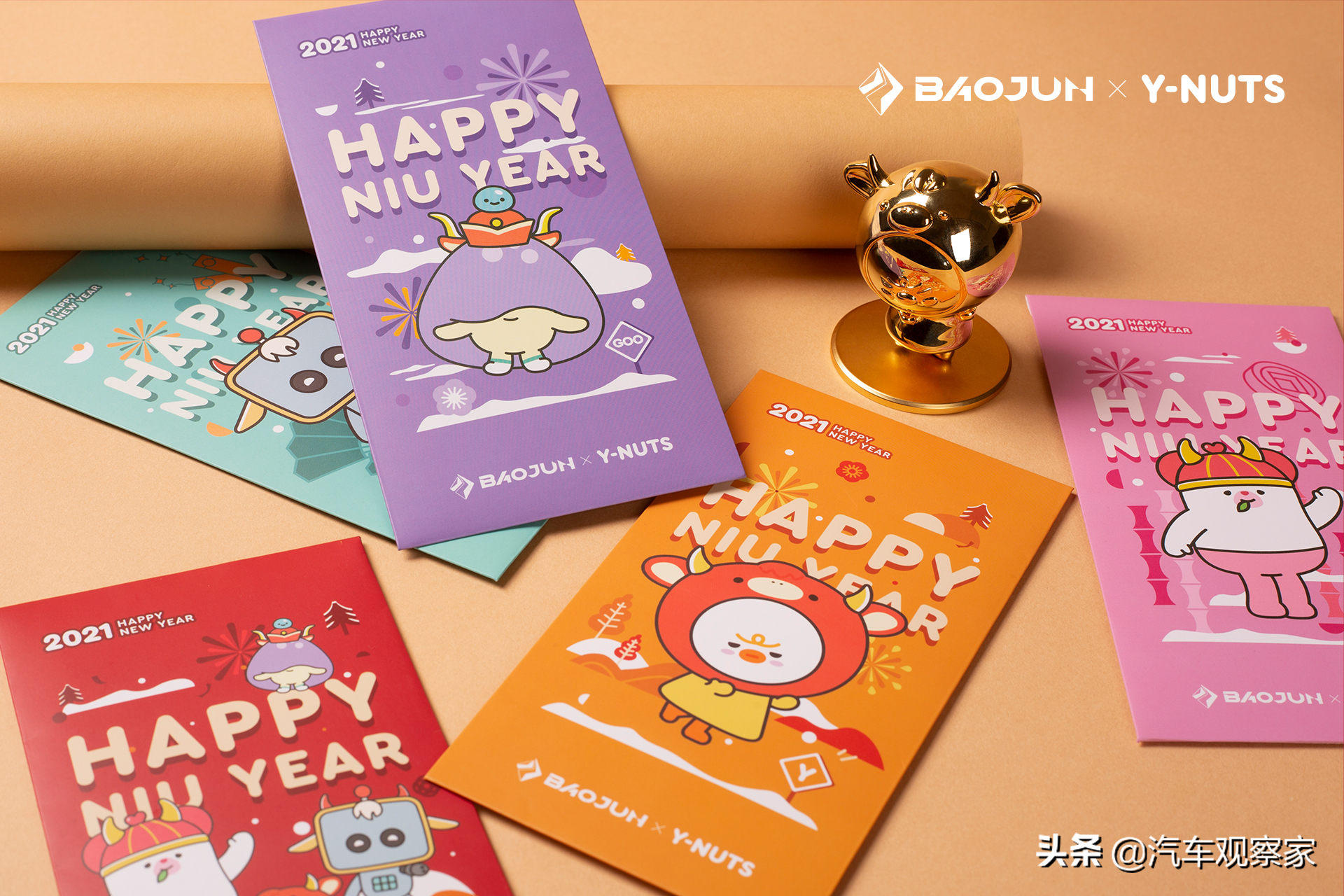 中国潮牌,新宝骏造!BAOJUN x Y-NUTS牛气礼盒萌趣的包装和亮眼的中国红让新年气氛呼之欲出。