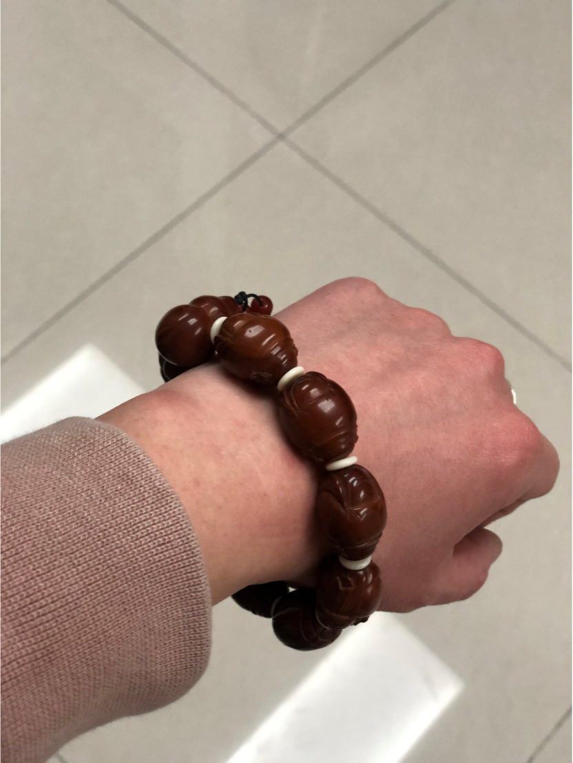 小哥下意识看了看自己的左胳膊只有一串还未开光的橄榄核!哎!