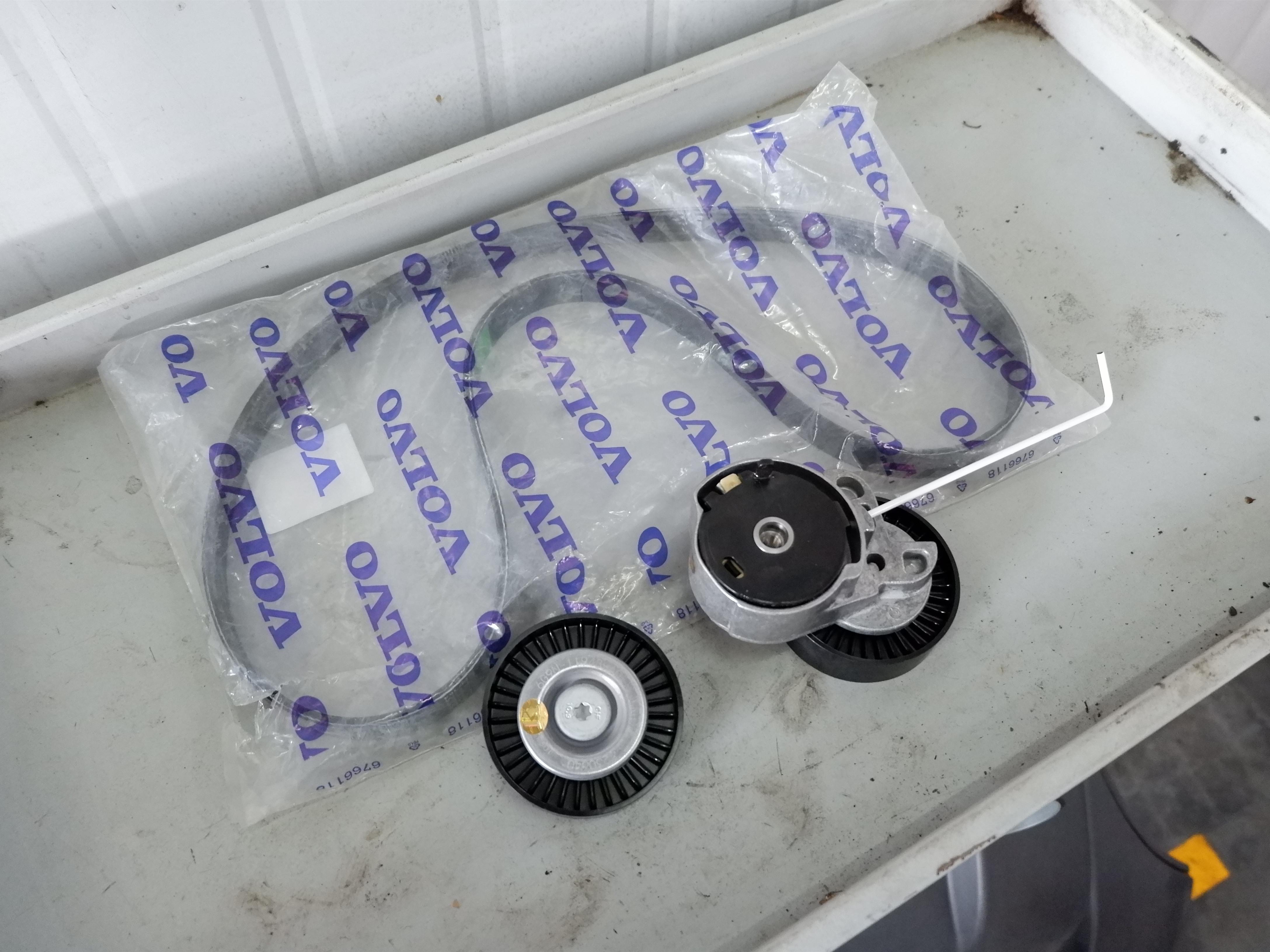 这辆沃尔沃XC60正在更换发动机的附件皮带,也就是发电机和空调泵上的皮带。原因是发动机怠速时一直响。即使坐在驾驶室里,拉皮带的声音也能清晰地听到。