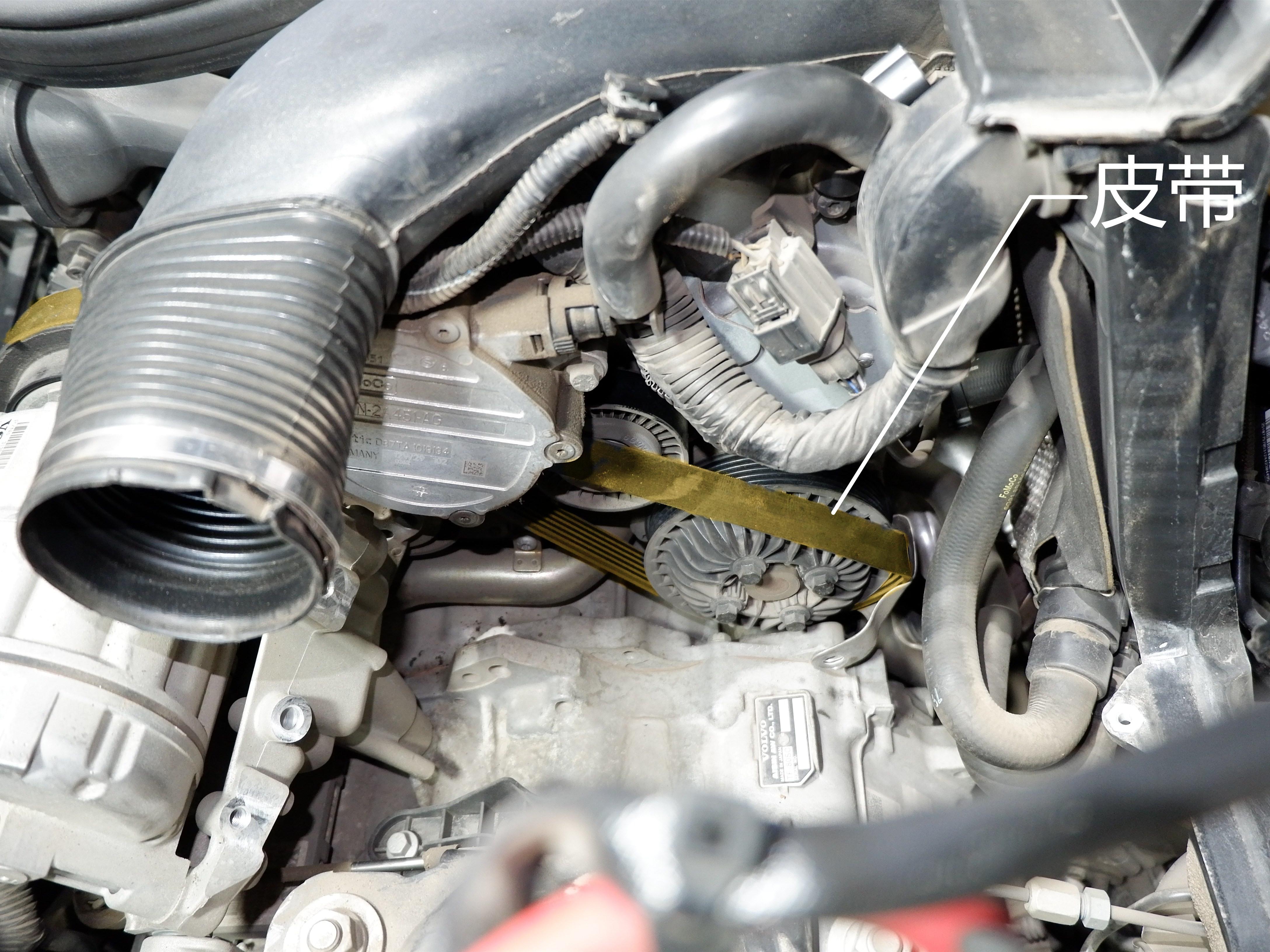 之所以拆了这么多东西,主要是因为XC60的皮带太深,即使拆了其他部分,也看不到XC60的全貌。图中黑色的就是它。更换的难度可想而知。