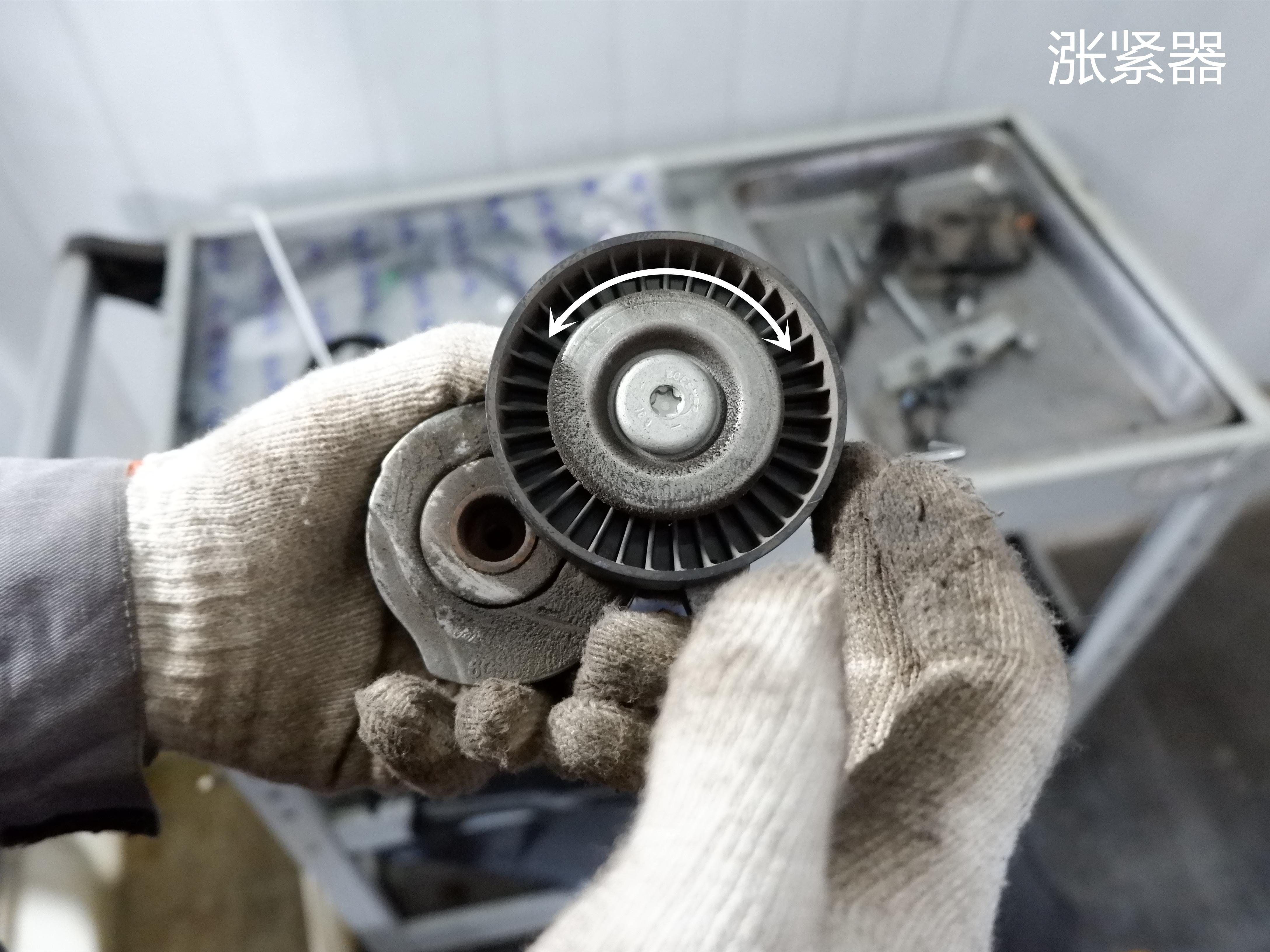 涨紧器的作用和它的名字一样,主要是用来给这个附件带一定的涨紧力,实现曲轴传动的动力全部施加到每个附件轮上。失去功能的时候,皮带一开始会松,传动效率明显下降,空调泵和发电机基本变成摆设。它会自己响,会有明显的“哒哒哒”声。