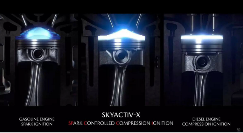 内燃机根据不同的燃料选取不同的点火方式,如果是汽油发动机通常使用火花塞点火,柴油发动机为压燃,由于柴油的蒸汽发性和流动性都比汽油差,因此柴油机不能像汽油机那样在气缸外部形成可燃混合气体从而用火花塞点燃,所以通过压力将燃料“压着”。不同的燃料应对不同的点火方式,其中优劣势也很明显。柴油发动机油耗低但容易产生更多噪音,而汽油发动机噪音小,但由于火花塞点火受到空燃比限制,所以点火的效率会受到一定影响。但从油耗去比,不如柴油发动机压燃的方式低。有没有一种可能,将两者结合起来?取二者的优点,同时也能避开劣端。马自达SKYACTIV-X发动机就在这样的构想下诞生。