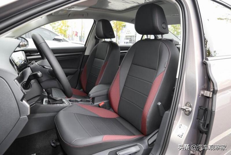 宝来的内饰应用搪塑材质作为主体,所以质感并不会显得很豪华。但是,在门板和扶手箱位置加入了一些皮质在里面。同等价格对比之下,宝来中配以上才有中控屏,这确实不算很厚道。