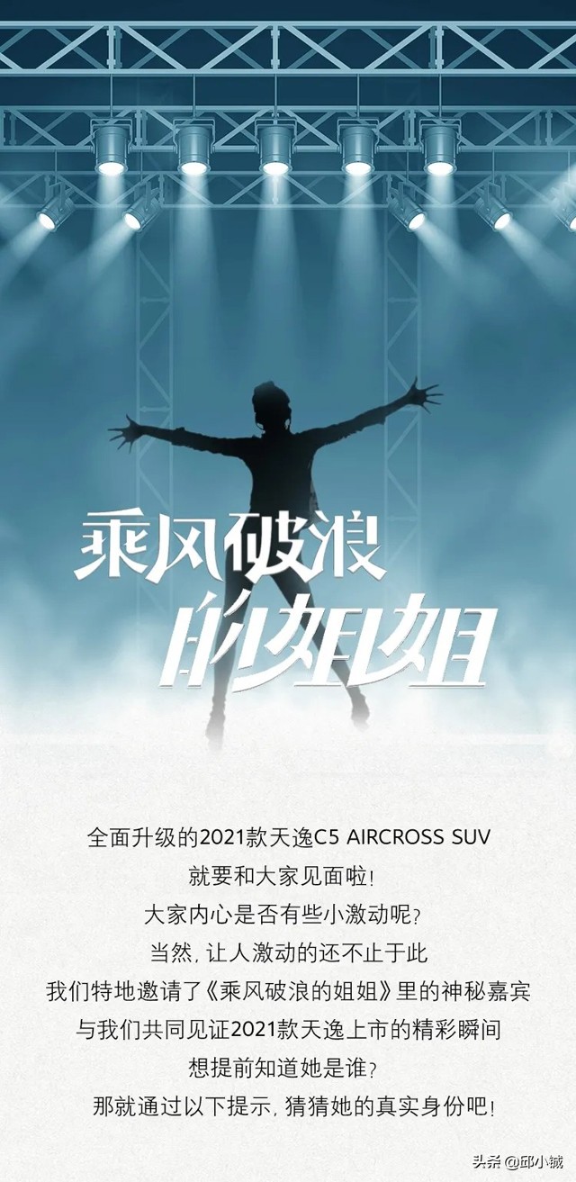 东风雪铁龙天逸C5 AIRCROSS SUV自上市以来,以“专业级舒适SUV”的综合实力,赢得众多客户选择。《乘风破浪的姐姐》自开播以来,以姐姐们唱跳俱佳的全能表现,收获大批粉丝的追捧。3月19日,东风雪铁龙2021款天逸C5 AIRCROSS SUV将携手《浪姐2》中的全能实力担当在上海CITROËN SPACE雪铁龙舒适空间正式上市。