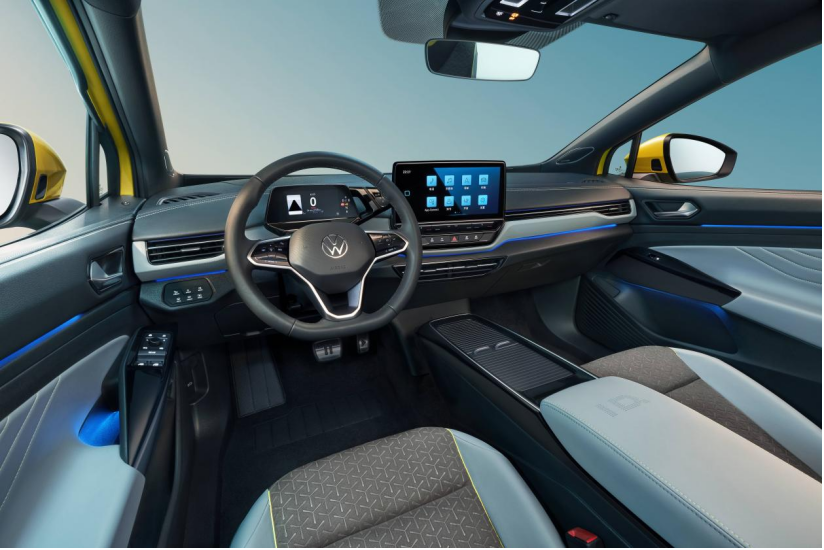 打开车门,ID.4 X的设计非常简约、简单。5.3英寸的悬浮液晶仪表右边连接着旋钮换挡杆,设计非常讨巧,使用起来也很方便。悬浮中控屏幕12英寸内置MOS4.0车联网系统。