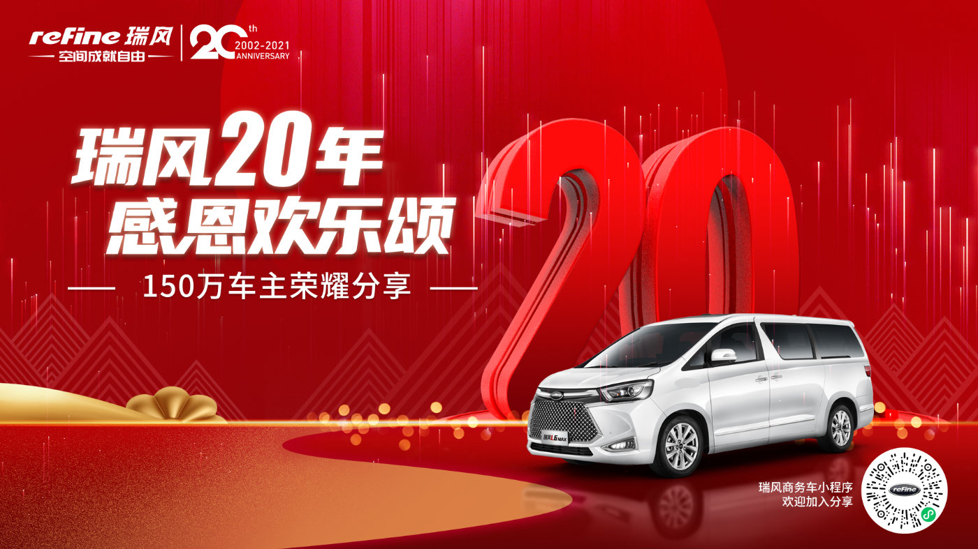 在瑞风20年之际,瑞风汽车将满满诚意带给消费者,不仅为用户提供从购车到用车的全周期高价值体验,也用最有诚意的促销政策给用户带来实惠。展望未来,瑞风品牌将会在5年内推出10余款迭代升级产品,覆盖从入门级到中高端的各个细分领域,满足从商用到商务接待场景的需求,持续为中国MPV市场注入新的活力。