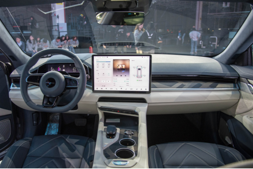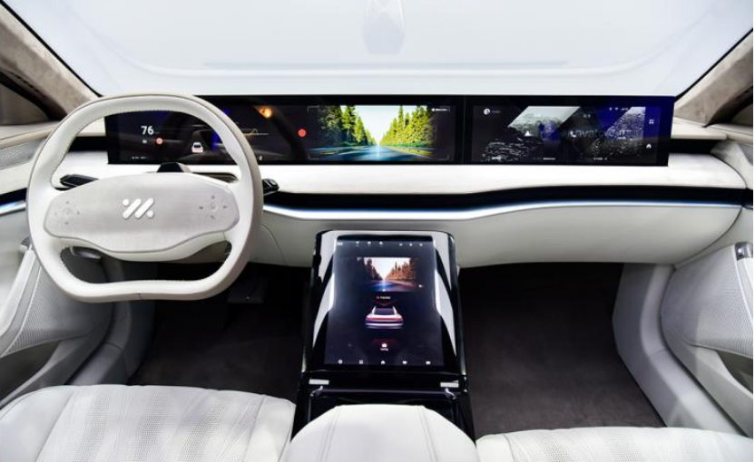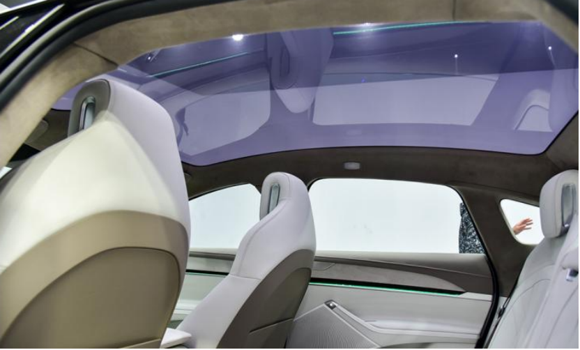 因为目前还不是最终量产车型,所以内饰设计细节也没有什么参考价值。但可以肯定是,新车将采用前/后无框车门,且具备电动开闭和电吸功能。车内则采用巨辐天幕顶棚,记得大风天别停楼下。