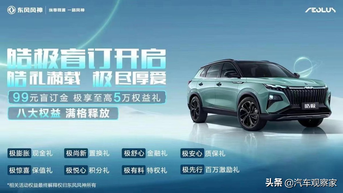对于一款产品来说,高性价比与高产品力的结合,就是对用户最大的“宠爱”。5月21日晚,让许多用户翘首以盼的皓极“盲订权益”终于揭开了面纱——参与盲订的用户,获得现金礼、置换礼、金融礼、质保礼、保值礼、积分礼、特权礼和百万激励礼,共8大“皓”礼。