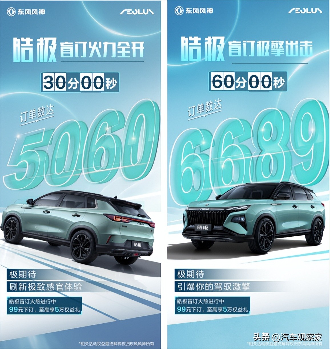 5月21日,东风风神皓极盲订暨第二届粉丝盛典如期而至。东风风神全新战略车型——东风马赫双擎MHD混动系统首款SUV皓极携8大权益“皓“礼,于当晚20点正式开启盲订!仅13分14秒后,东风风神就收到订单3827台,并帮助所有下订车主开启了30倍权益。盲订开启一小时,皓极订单突破7000台,让人直呼“皓家伙”!