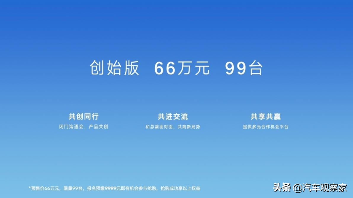 当晚预售的腾势D9共两个动力版本,6款车型,预售价格区间为33.5-46万元。另外,还推出一款创始版车型,预售价为66万元,限量发售99台。