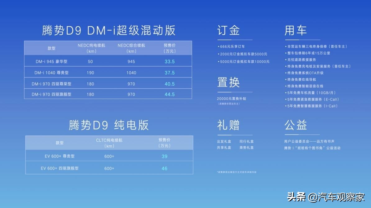 而且,针对线上线下两个渠道,腾势D9还推出了多项消费者豪华预定权益。