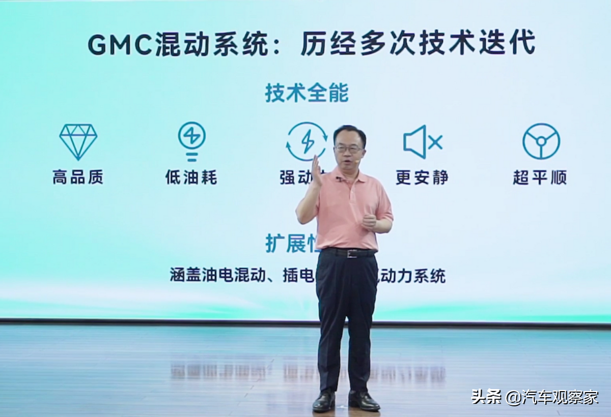 路线一正向自研的GMC双电机串并联混动系统,经过多次迭代,技术愈加全能,具有高品质、低油耗、强动力、更安静、超平顺五大核心优势,且扩展性强,涵盖油电混动、插电混动、增程式混动,甚至氢动力系统。