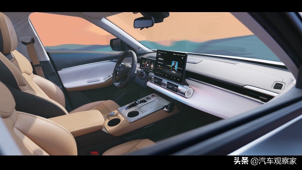 相较于外观上的未来感,影酷内饰更大有乾坤。通过使用东方文化中关于“圆”的符号,传达出“圆满、完美”的寓意。例如蓄能卷轴设计,通过贯穿主驾区域集成了车机屏幕、旋转式出风口、智能温控旋钮、隧道氛围灯等装置,中控大屏就像是从卷轴中徐徐展开的画卷,将科技与东方哲思完美结合。