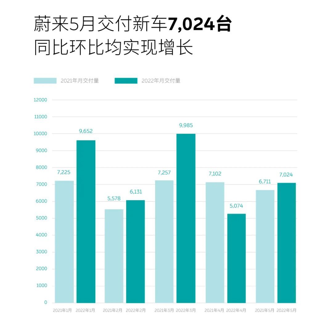 蔚来汽车作为最早成立的造车新势力品牌之一,在近一两年来销量都没有太突飞猛进的增长。据5月份蔚来公布的销量数据显示,蔚来汽车5月一共交付新车7024辆,同比环比均实现了增长。不过需要说明的一点是,蔚来并没有公布同比/环比增长的具体数据,所以这也很可能是数据表现不太好看。