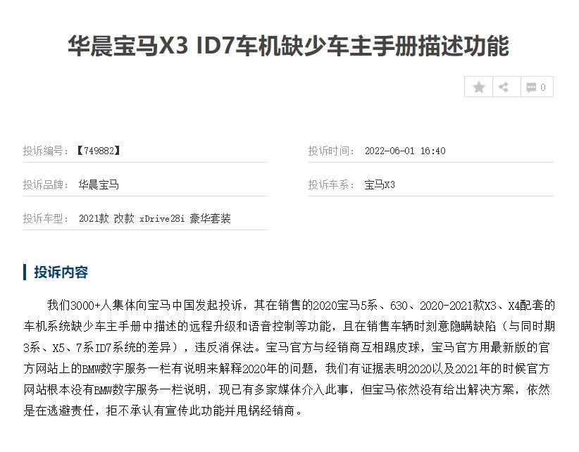 那到底是怎么个实车与宣传不符呢?原来,车主们之所以投诉,是因为宝马车型的车机系统有减配的问题。据车主反映,自己的宝马X3在车主手册中描述有远程升级(OTA)和语音控制功能,可实际在买到的实车上却并没有提供,因此车主们纷纷表示这是宝马在有意识地进行减配。