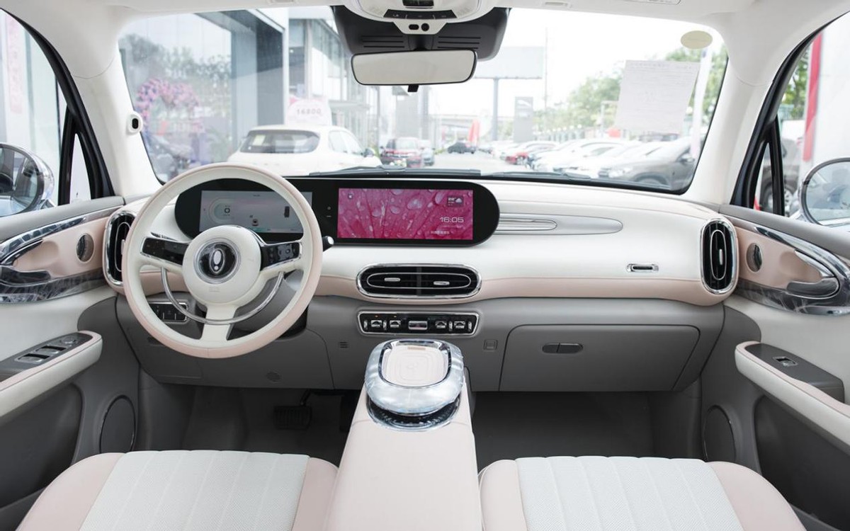 当然了,欧拉芭蕾猫虽然预售价比较贵,但人家在内饰上的用料和做工确实是比甲壳虫要更好。首先为了迎合女性用户的喜好,芭蕾猫车内的整体配色非常“少女”,被称之为“天鹅湖”的前排扶手区域更是采用了类似水晶的材质进行打造,这点在质感上可谓相当出众。