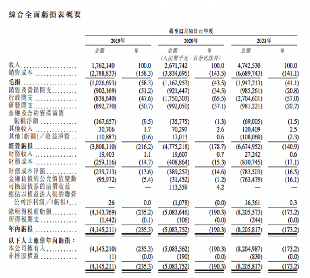 威马的钱烧到了哪里?招股书显示,在销售成本方面,威马汽车销售成本由2019年的人民币27.88亿元增加37.5%至2020年的人民币38.35亿元,并由2020年进一步增加74.5%至2021年的人民币66.9亿元。这样的销售成本远高于同行。