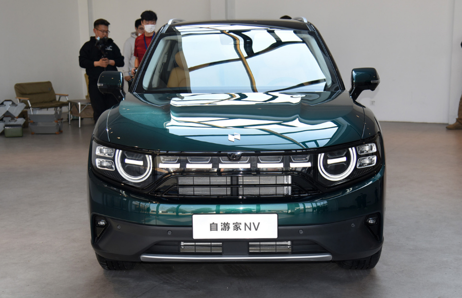 自游家NV将采用增程式和纯电两种驱动方式,图示为增程版车型。车头保留了进气格栅造型,采用分层式设计,灯组设计比较复杂,中间为贯穿式的LED灯带,非连续的样式很独特,两侧还有圆环形的日间行车灯和双目式的大灯,整体具有较强的科技感。