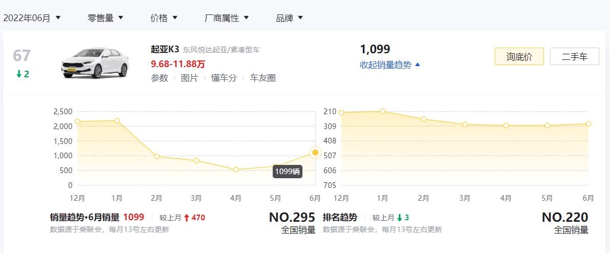 在国产车还没有彻底崛起的年代,曾经的起亚K3那绝对是年轻人心目中首选的一款车型。毕竟,不管是颜值还是口碑,起亚K3都是在线的,加上当时市面上可选且有个性的家用轿车不多,于是起亚K3就这样热销了起来。那现在呢?换代之后的起亚K3在6月销量只有1099台,算是毫无存在感的一款合资轿车了。