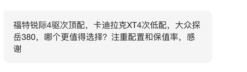 看到标题,铁汁们是不是有点懵?20多万上哪买性能SUV去?确实,20多万想买辆全新的性能SUV肯定是忽悠人的,但今天这位真实网友纠结的这三款车型,堪比家用SUV领域的“性能SUV”。 首先看看这位网友选择的这三款车型,分别是福特锐际次顶配(四驱嘉享款:指导价20.48万元)、凯迪...